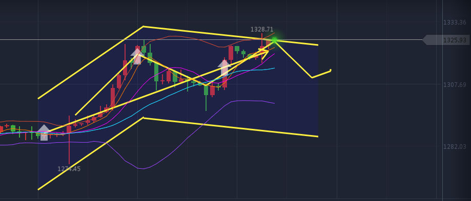 行情回顾 黄金,在上周收敛三角形顺势破位之后,整体上依托1291迎来了持续性的上涨,1328.6是本周触及最高的位置,37美金的涨幅对于周线级别而言算得上中规中矩,小时线、日线、周线全部收阳,最终价格定格在1325.9,这是多头对空头完美的一击。 只不过,新高的突破来的实在不容易。 周一:用时6个交易日,依托1291终于突破