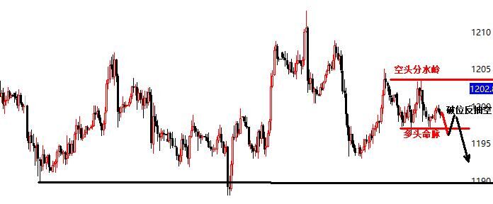 黄金 不知是市场清淡,还是假期影响,又到非农日,但却感觉不到市场的热情。 昨日晚间公布ADP利多黄金,金价冲高回落。 而在之前,晚间分析当中,明确提出:黄金走不出1206-96区间。 一个是前期上升回撤的618支撑位,另外一个是周三晚间的开跌口,刚好形成区间。 当然,早间定义震荡的时候,我们用了一个力度原则,前一日上升,回撤力度大并一定变方向,只是限制了破高的动能,而如果继续强势,一定有二次反抽的形态。 但是昨日行情测试1196后,横盘蓄力上升,这就打破了震荡上升的原则,横盘上升周期太长。后面一定是震荡,所以,这是为什么1205-6空的原因,一方面定势为震荡, 另一方面,选择前一日的开跌口。