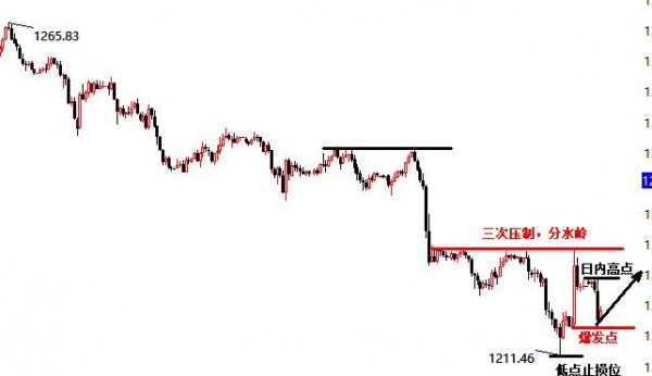 黄 金 周四,终于迎来了一次较大的反抽,黄金恰好触及1211-2一线完美上攻,测试前期开跌口1230回落。 今日早间,就有人再次问到:这算不算底成立的条件。 记得昨日讲过一个例子:抽烟没火,一次次跑燃气灶的事。 趋势的故事也是如此,不要让行情牵着鼻子走,而是提前规划行情,也不要因为一个阳线,一根阴线就改变当初对行情的看法。 在这波下跌中,强调最多是还是趋势划分: 极弱下跌和震荡下跌的区别! 极弱,一定是连续的。而震荡,是无连续的。 比方昨日英镑,欧盘连续下跌,美盘反抽空,可以拿到利润。 但如果是黄金,同样日内连续下跌,美盘反抽空,是没有利润可言的。 但日线节奏却都是跌。 节奏代表了我们能不