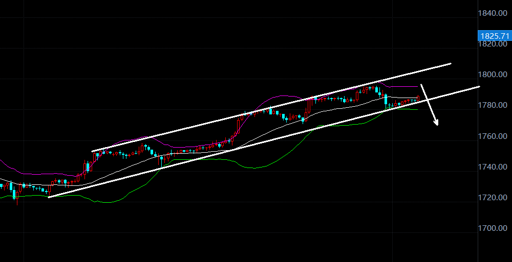 策测解金:黄金呈通道下行,原油转向选择低多 金银油基本面分析: 昨日黄金符合预期的走震荡下行,早间从1788跌至日内低点1774,随后反弹,晚间到达1792后转跌,再次跌回1780附近开始排行,回吐涨幅,最终收跌,金银双双受美元走高打压,美元拉升至93.57。 原油方面,受德尔塔毒株的影响,原油库存而面临供过于求的风险,原油大跌超4%,跌破63.0,录得6连阴,尾盘企稳反弹,最终原油收跌1.11%于63.8。原油目前从技术上看,下方的空间不大,指标进入了超卖,所以日内原油操作以低多为主,在62.0-62.5区域做多,上方关注64.0,64.5压力,突破向上看65.0。 今日重点关注:20:3