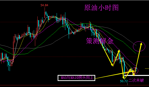策测解金:6.19原油平行四边形大涨大赚2.5美金,空单何解? 原油今日创下今年1月以来最好表现。目前已经涨4%,报54.25美元/桶,市场预计原油需求将增加,因美联储和欧洲央行的宽松倾向以及贸易摩擦局势有所放缓。一个值得关注的短期主要水平是6月10日的高点54.84美元/桶。 原油大赚2.5美金分析: 原油今日整体呈先跌后涨,目前创下了今年1月以来的最大涨幅,而盘中早间52.0的空止盈0.4美金,小有收益,晚间油市在三底的情况下,且MACD背离迎来大涨,盘中策测解金在51.7给出的多头策略,目前获利2.5美金,一手斩下2500美金的大单,恭喜大家了!目前从小时图分析,整体呈三底形态触底反弹