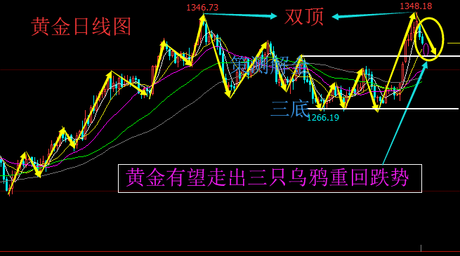 策测解金:6.11黄金有望走出三只乌鸦重回跌势 黄金有望走出三只乌鸦: 黄金两周时间自1275一路上涨至上周五非农高的1348.2,70余美金的涨幅可以说是一气呵成,上破1280后策测解金就一路看涨做多,斩获了丰厚的利润,在非农的助力下,市场预期美联储将再次进入降息的节奏之中,推动了黄金普遍看涨情绪,而周日传出墨西哥跟美国的摩擦得以缓解释放了部分避险属性,同时技术面的调整需求也是昨日市场整体走回落的关键,回调至1325后小幅反弹至1330.而1325则三次试探没破,今日成功下破此位,那么日线上有望走出三只乌鸦型态,金价重回跌势的可能! 黄金技术面分析———— 昨日黄金低开低走,三次回落至13