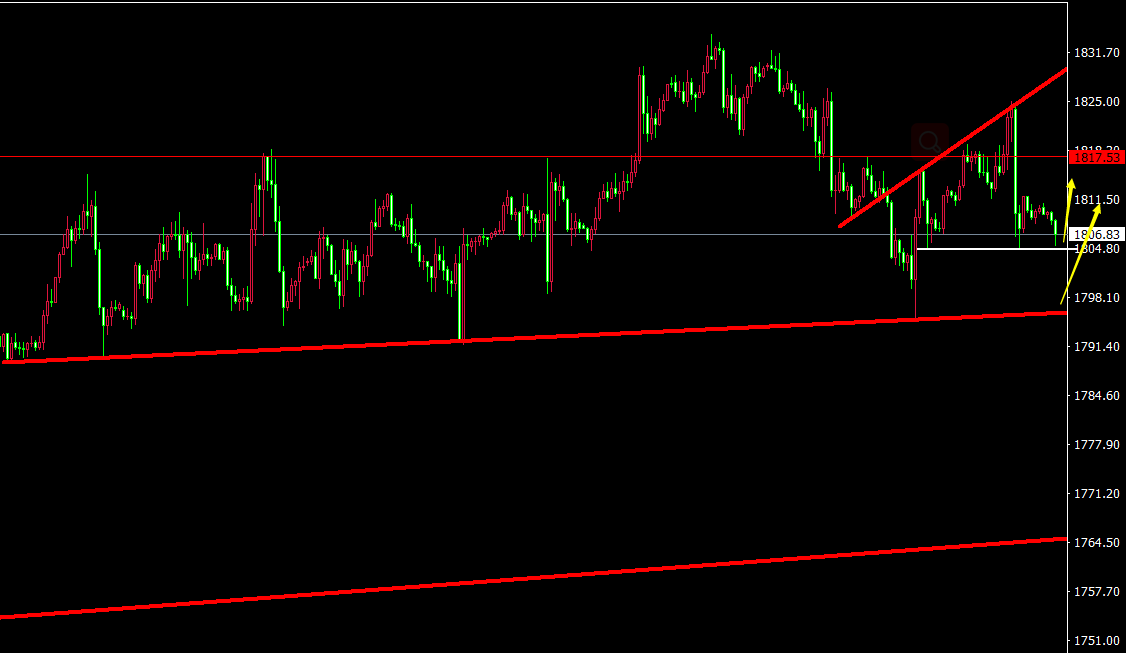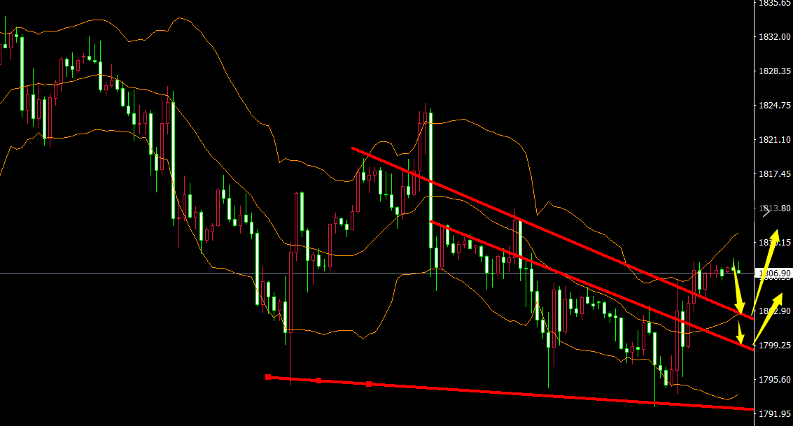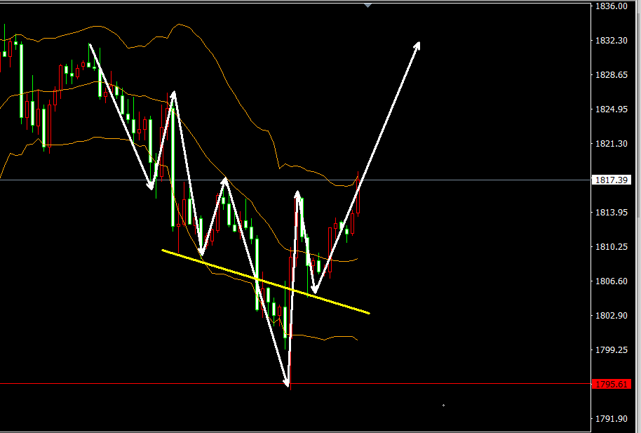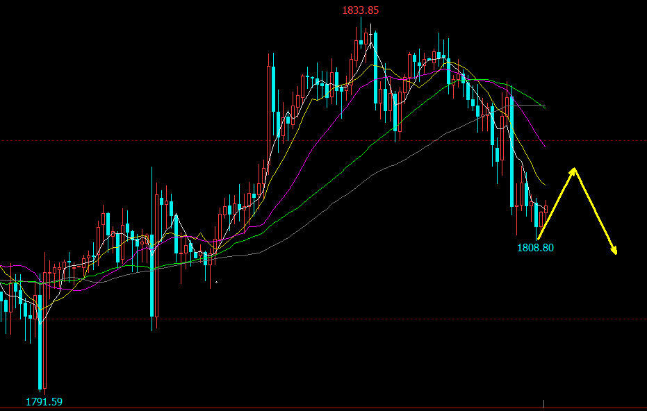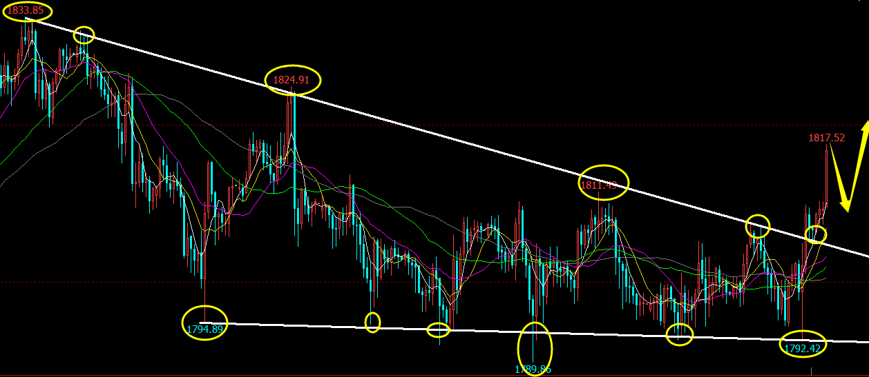 策测解金:黄金头肩底看涨,原油昨日71.2空大赚 金银油基本面分析: 昨日美元一度冲破93上方,这也是三个月以来新高,而另一边的黄金从早上的1817一度一度跌至1795,晚间美元回落,黄金也快速反弹,来到昨日压力区1815,随后小幅下滑,录得一根带有阳垂线,这对今日的金价比较有利,白银一度下破25关口,较日高走低约0.8美元,为4月13日以来首次,最终收跌1.91%于25.17。金银涨跌不一,但双双均筑底。 昨日原油方面,早间71.2附近给出空,因OPEC+周末达成增产协议,原油大跌超8%,创今年5月28日以来的新低,创下了4月21日以来的最大单日跌幅,因此昨日盘中原油空赚得比较嗨,最终原油