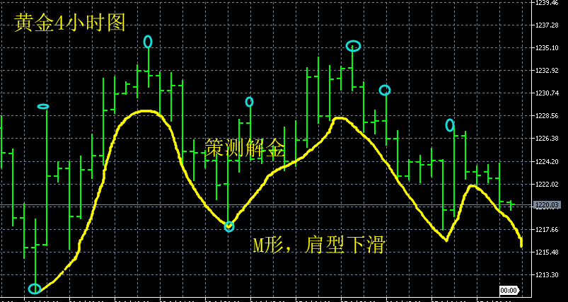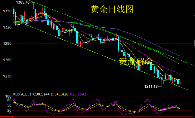 策测解金:7.20特朗普一言使黄金上蹿下跳,原油66支撑强势回归 黄金基本面分析: 周四,在美元的强势打压下,黄金价格持续走低,最低达1211.46美元/盎司。但盘中美国总统特朗普称美元走强不利于美国,这番言论令美指迅速跳水,黄金受美指走低影响从日内低点反弹至1229.5美元/盎司,但随后金价再度回落至1220关口附近。截至收盘,美指收涨0.09%,报95.174。人民币旗型贬值至6.8美元,黄金收跌0.39%,报1222.5美元/盎司;白银收跌1.54%,报15.33美元/盎司。 黄金技术面分析: 昨日黄金先跌后涨,收根带有下影线的阴线,盘中1223空单盈利10美金,操作一手盈利1000美