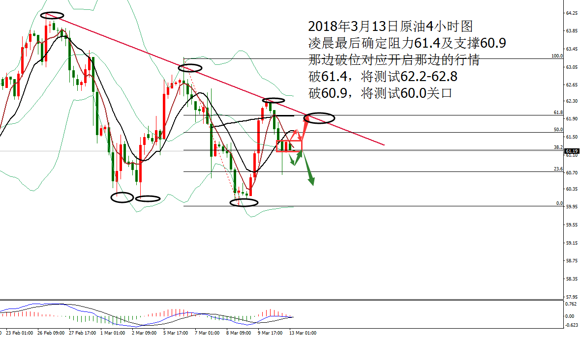 何小冰 黄金三针探底1313,原油61.5空 03.14 3月13日美国总统特朗普解除国务卿蒂勒森及其助理的职务,黄金快速拉升十美元,白宫人事变动还会继续,美元指数承压失守90关口,目前报价89.8,黄金探底1313拉升冲刺1325,随后快速回撤十美元,后半夜仍是拉升反弹,目前报价1327.6,美日亚盘破低,欧盘慢牛反弹冲刺107.3,美盘受