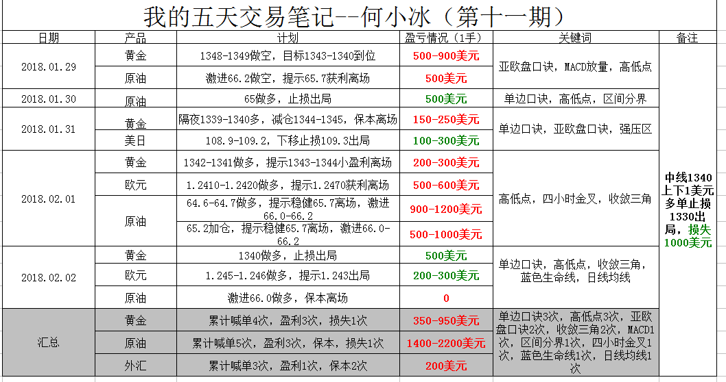 何小冰:我的五天交易笔记(第十一期) 我的五天交易笔记,记录投资那些事儿! 大家好,我是何小冰,欢迎来到本期交易笔记。超级非农数据周,除了万众瞩目的非农就业报告,还有美联储1月货币政策利率决议。美联储如预期选择按兵不动,不过鹰派的政策声明提振美元,打压黄金,通俄门再生变数,避险启动拉升重回支撑区域。美国