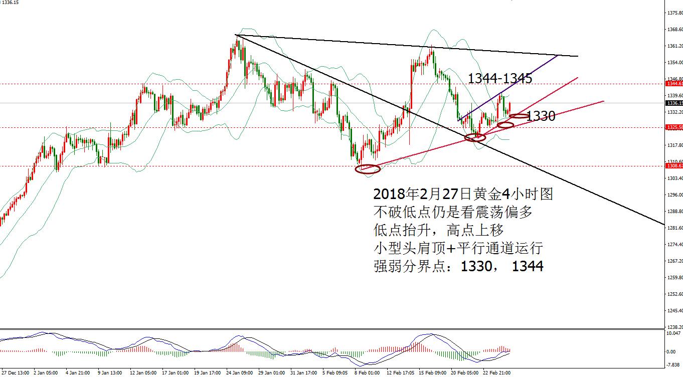 何小冰:黄金不破1330看破新高,原油多美日空 02.27 周一美元指数探底回升,呈现V型反转,冲高受阻90.3回落,早间开盘仍是低开于90关口下方。对应黄金等非美货币冲高回落,黄金自1327冲高1341,美盘回落回踩1330支撑位置,震荡收盘,早间开盘回踩支撑1331后开始拉升。美元兑日元跟随美元指数反弹,仍是承压在昨日高点107.1下