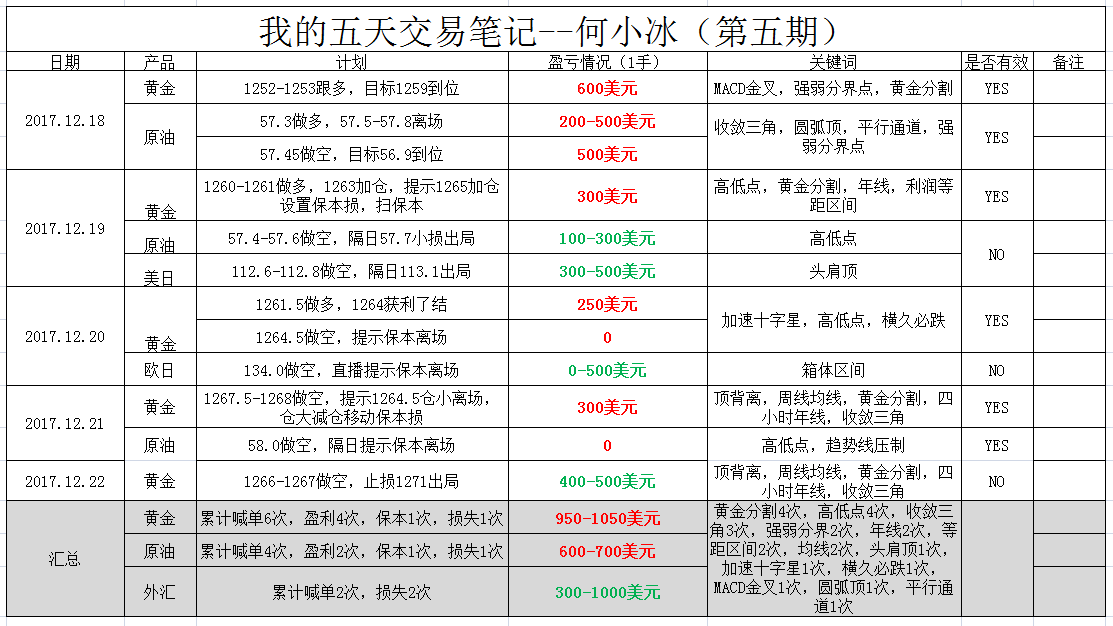 何小冰:我的五天交易笔记(第六期) 我的五天交易笔记,记录投资那些事! 大家好,我是何小冰,欢迎来到本期《我的五天交易笔记》,在这一期中,我们可以感受到市场被浓厚的节假日气息包裹着,行情波动仍是处于窄幅震荡为主,当然这种震荡在周四出现拐点,各个产品都出现加速的情况,接下来我们一起进入本周的交易笔记,重