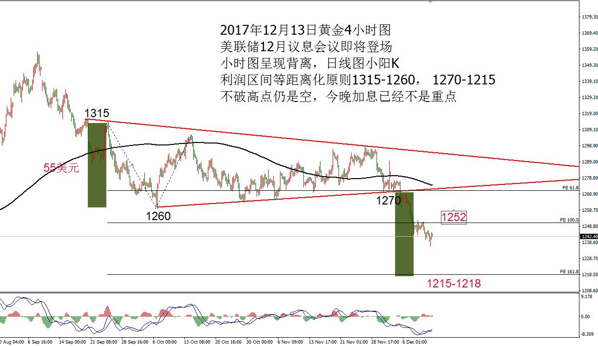 何小冰:原油六连胜反多,黄金1252强弱分界 12.15 超级央行数据周即将结束,本周市场焦点美联储12月议息决议,加息尘埃落定,2018年仍是保持3次加息计划,美联储现任主席耶伦也表示对于美国税改的认可,仍是担忧就业和通胀。税改法案将由参议院和众议院商讨后提交特朗普,预计在下周三完成签署,对于美元将会有不错的支撑作