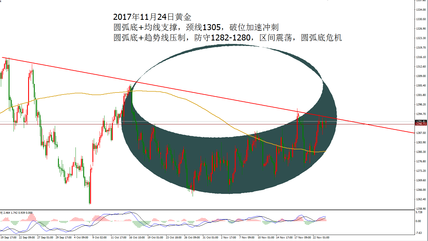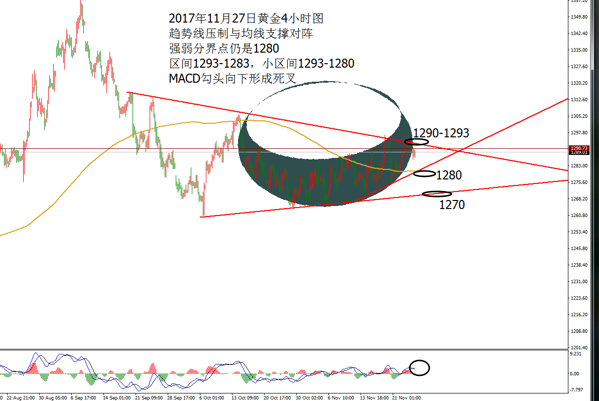 Anna点解:黄金1282定多空,OPEC助力原油中长线11.30 周三终于来点真货,黄金下破趋势线支撑1290,加速到达1282支撑位置,得益于美国第三季度GDP靓丽数据及美联储主席耶伦对于美国经济的认可并表明循序渐进加息必行的态度,美元站稳93关口拉升,凌晨税改再传厄运,税改或增加除法加税条款,美元回吐体内涨幅,尽管如此,经济