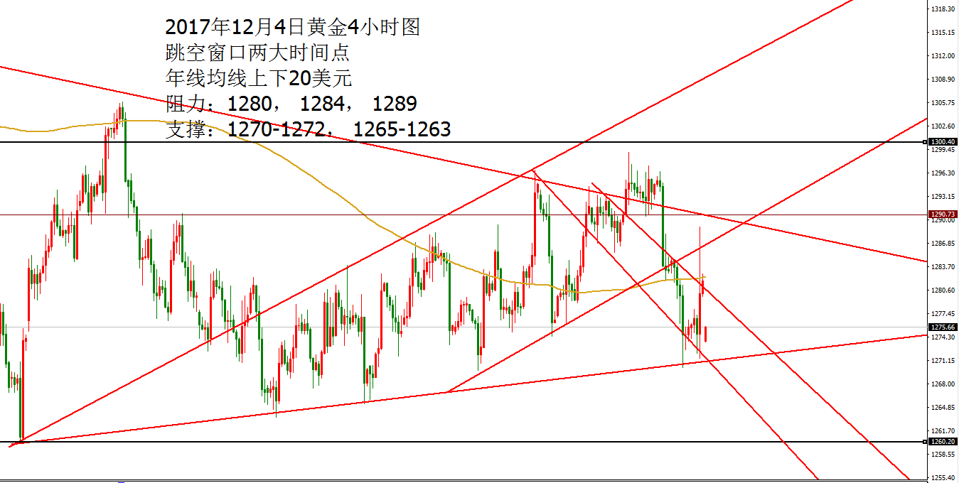 Anna点解:黄金1280以上跟空,原油区间震荡 12.04 本周超级非农数据周,进入12月,第一天市场就带来了不少惊喜和意外,美国通俄门最新爆料,美国前国家安全顾问迈克尔弗林12月1日认罪,承认自己向联邦调查局提供虚假信息,并表明受到特朗普女婿的指示,特朗普随后出现表明立场态度,黄金自1273快速拉升至1289,最终承压回落