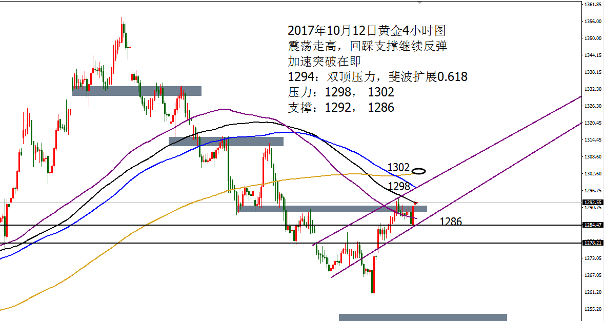 Anna点解:美日112.5空,黄金1292加速多,原油午后空 10.12 周三黄金亚盘冲高受阻1291.5走回落,午后触及1287一线,欧美盘维持3美元窄幅震荡走高,由于市场将更多注意力放在凌晨公布的美联储9月货币政策会议纪要,黄金直至美盘仍是窄幅震荡为主,欧盘不破高不破低,美盘震荡,美联储9月释放鹰派言辞并强调加息,市场普遍认为