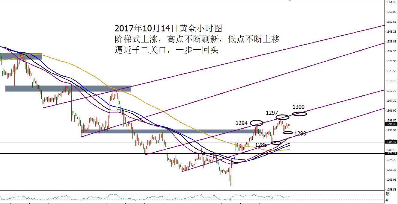 Anna点解:美日隔夜112.4空单看破位,黄金多单冲千三 10.13 周四黄金亚盘延续涨势冲刺刷新前一日高点1294,午后欧盘加速1297高位震荡,晚间回踩支撑1294,美盘因美国当周初请失业金数据利空,黄金快速下探1291,最低触及1289.5,探底回升走震荡,尾盘震荡收盘1290上方。 亚盘续涨破高,欧盘加速破高,美盘回踩诱空反弹。 通