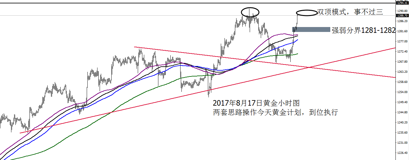 Anna点解:08.18黄金双顶做空,原油阴阳交替看跌 周四黄金亚盘延续凌晨美联储鸽派言论上涨,冲高1289回落,午盘时段回踩1286快速拉升至1290,欧盘承压震荡回落,晚间触及1283走高,美盘前后窄幅震荡,随后拉升冲高1289,探底1281反弹来回拉锯震荡。 亚盘延续冲高,欧盘回踩不破强弱分界,美盘震荡调整。 昨日原油窄幅震荡,