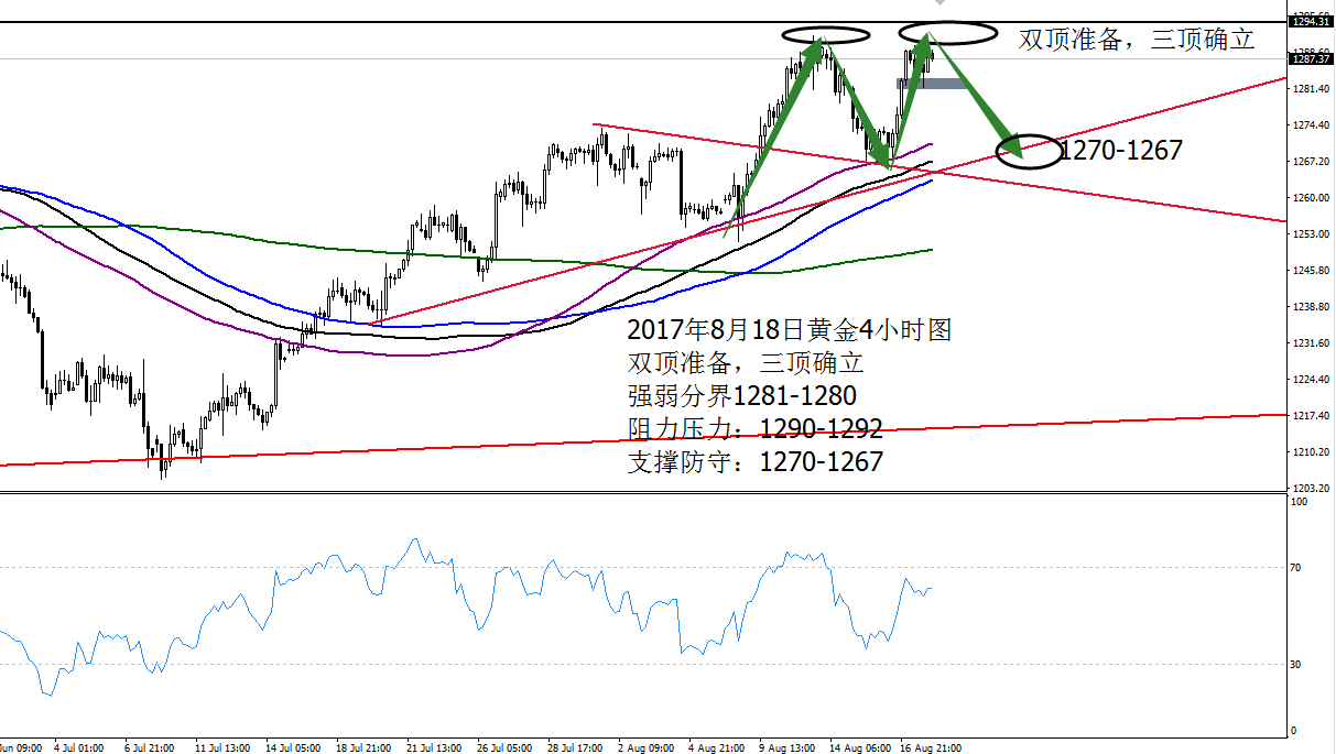 Anna点解:08.17黄金关注1282两步走,原油区间高估低渣 周三白盘黄金承压1274震荡回落,欧盘时段测试1270一线,美盘即使数据利好黄金仍是无动于衷,加速下探1267一线,最终仍是未能下破成功,连续24小时内两次测试1267一线未果,最终获得支撑,配合消息面信息,美联储7月货币政策会议纪要鸽派影响,黄金突破1275的阻力,目前