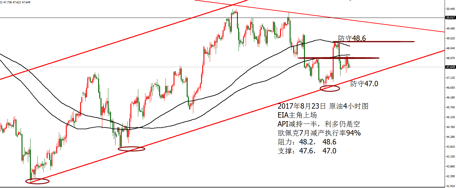 Anna点解:08.22黄金空单持有看震荡,原油47.1介多防守 周一黄金低开高走回补跳空窗口,白盘震荡走高,美盘刷新日内高点,因八月危机黄金避险性再次提升,现货黄金冲高未延续,反而陷入高位震荡调整。 亚盘跳空低开有回补窗口的需求,欧盘延续回补,美盘加速完成并确定新的趋势。 全球央行年会开始之前,投资情绪更多是保守