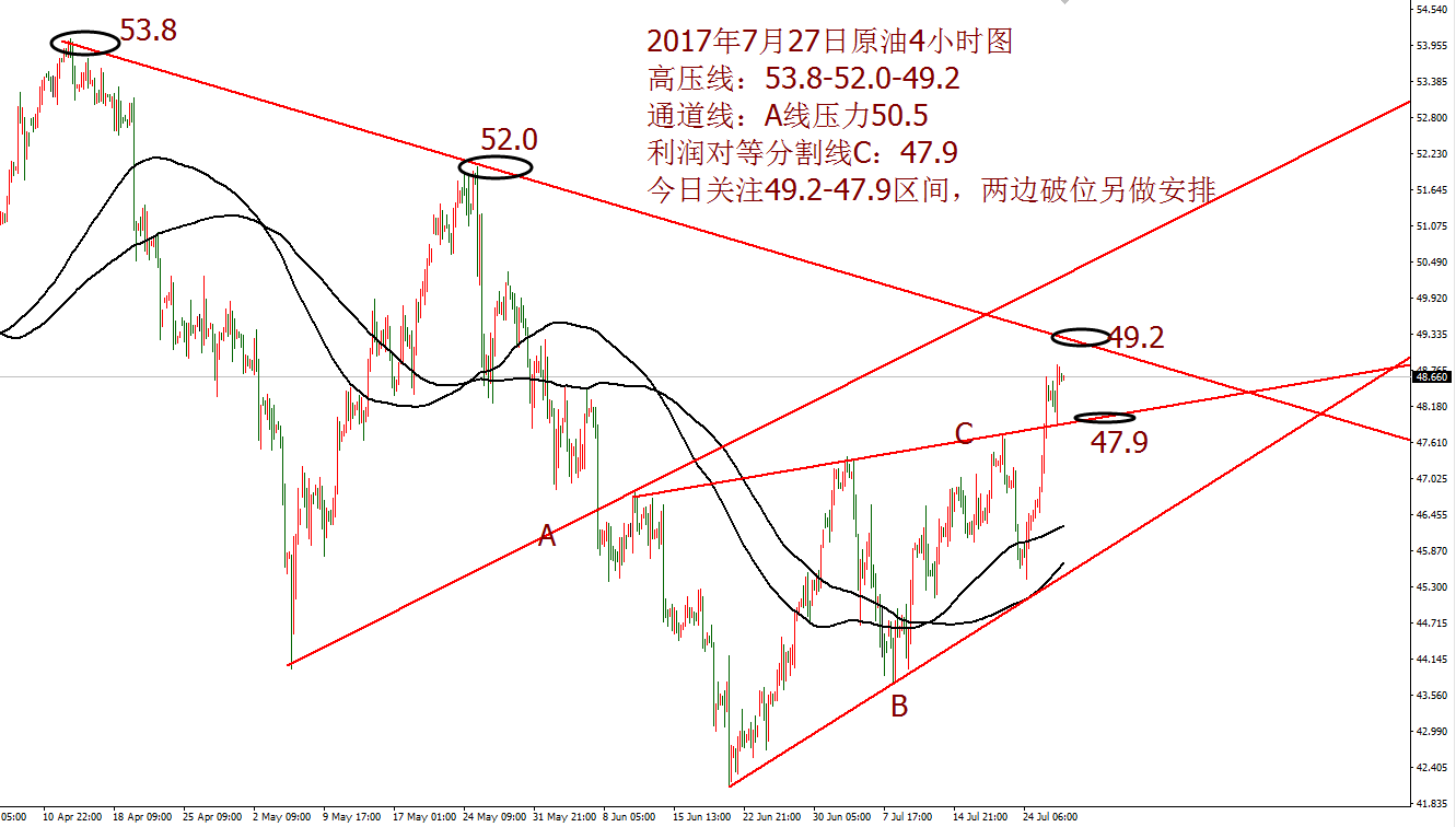 Anna点解:07.27黄金1258反转拉升,原油空头防守49.2 周三黄金早盘自1250.6开始回落,亚欧盘延续走跌,不断刷新日内低点,欧盘时段最低触及1243.8一线,触及日线支撑位置震荡调整,18点过后重回反弹走势,美盘时段仅2-3美元行情波动,次日凌晨美联储按兵不动,并表露缩表时间,消息公布后,美元指数直线下跌,机构COMEX介入
