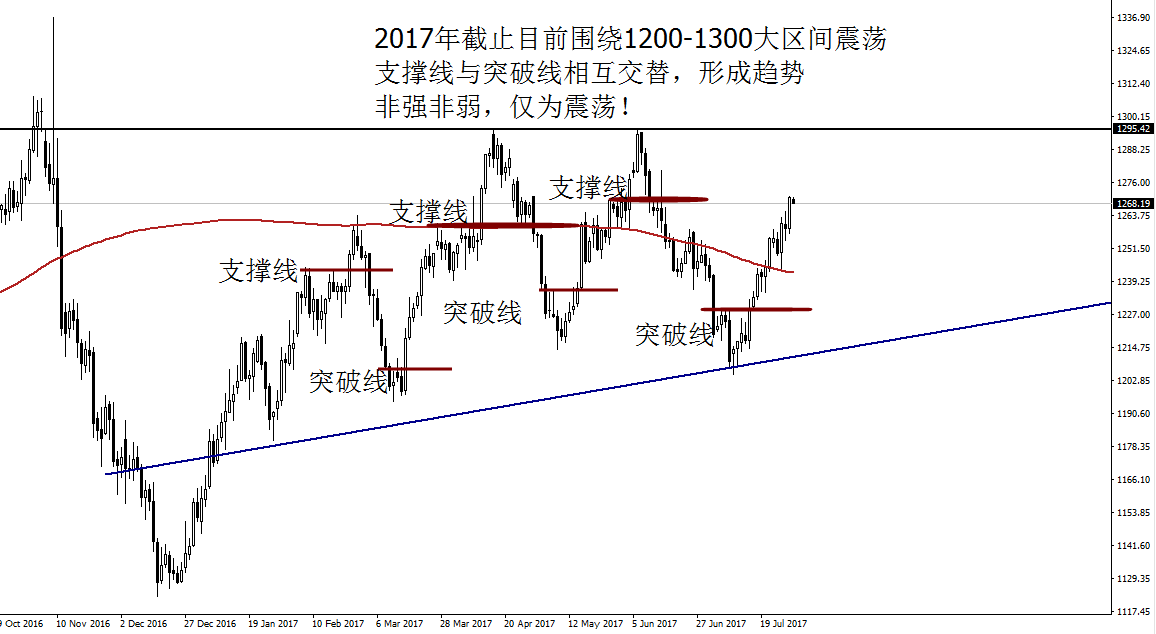 Anna点解:08.07黄金锁定1268-1254,原油阴阳交替震荡 上周黄金前四天围绕10美元窄幅震荡,不断制造出单边的假象,破高不冲高,破低不延续,反复拉扯,最终在非农数据公布后,油价开始下跌突破1260-1270的区间,打破了区间震荡,最低触及1254一线,收回区间1255-1275范围内。 美国7月非农新增就业20.9万人,表现强劲,增加美