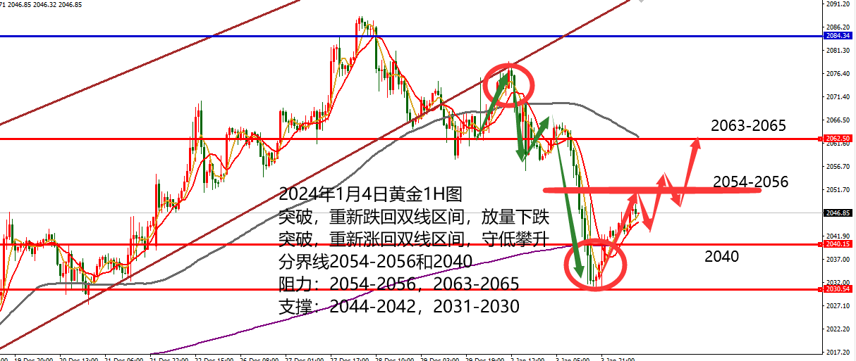何小冰:黄金波段计划已进场,短线保持低多看涨 怎么容易这个星期的黄金 ,两个字扫荡,非常的扫荡 ,又极度相似,差不多的时间上涨,差不多的时间下跌。 时间循环非常明显和相似, 亚欧盘循环上涨,美盘前加速上涨,美盘后冲高回落启动下跌,持续到凌晨两三点,确定支撑又重新启动上涨 上冲破高开始冲高回落,下探破低开始探底回升,价格持续来回的扫荡。 今日到周五了,凌晨两三点,价格跌至2013破低后又是探底回升重新回来,亚欧盘循环上涨再度来到2040关口 这次来到2040关口,明显有所不同的 周一持续徘徊2040关口 未有明显弹开动作,跌破放量下跌 周二触及2042 快速弹开 下跌 周三触及2040 快速弹