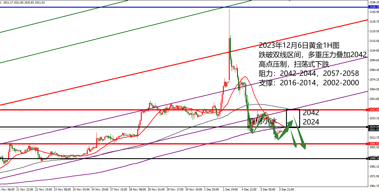 何小冰:黄金2042-2002空间扫荡,原油破低易探底回升 今晚市场将迎来小非农ADP数据,前半周已经够疯狂了,后半周的黄金会如何疯癫? 黄金周一开始强势突破新高,高台跳水,涨多少,跌回多少 破低点2072区域,美盘以此作为压制进一步放量下跌寻找2020区域,尾盘支撑反弹20美元幅度 昨日周二价格承压2041关口继续跌破低点走低,过程偏向于扫荡,承压下跌到支撑点反弹二次确定阻力,再度下跌跌破新低,午夜加速下跌至2010区域,同样是尾盘支撑反弹 较今日周三白盘的走势,价格支撑反弹也是20美元以上的幅度 加速冲高受阻回落,重新跌回压制的下方。 对于今日的黄金,我们总结出两个支撑和阻力点,两者共同