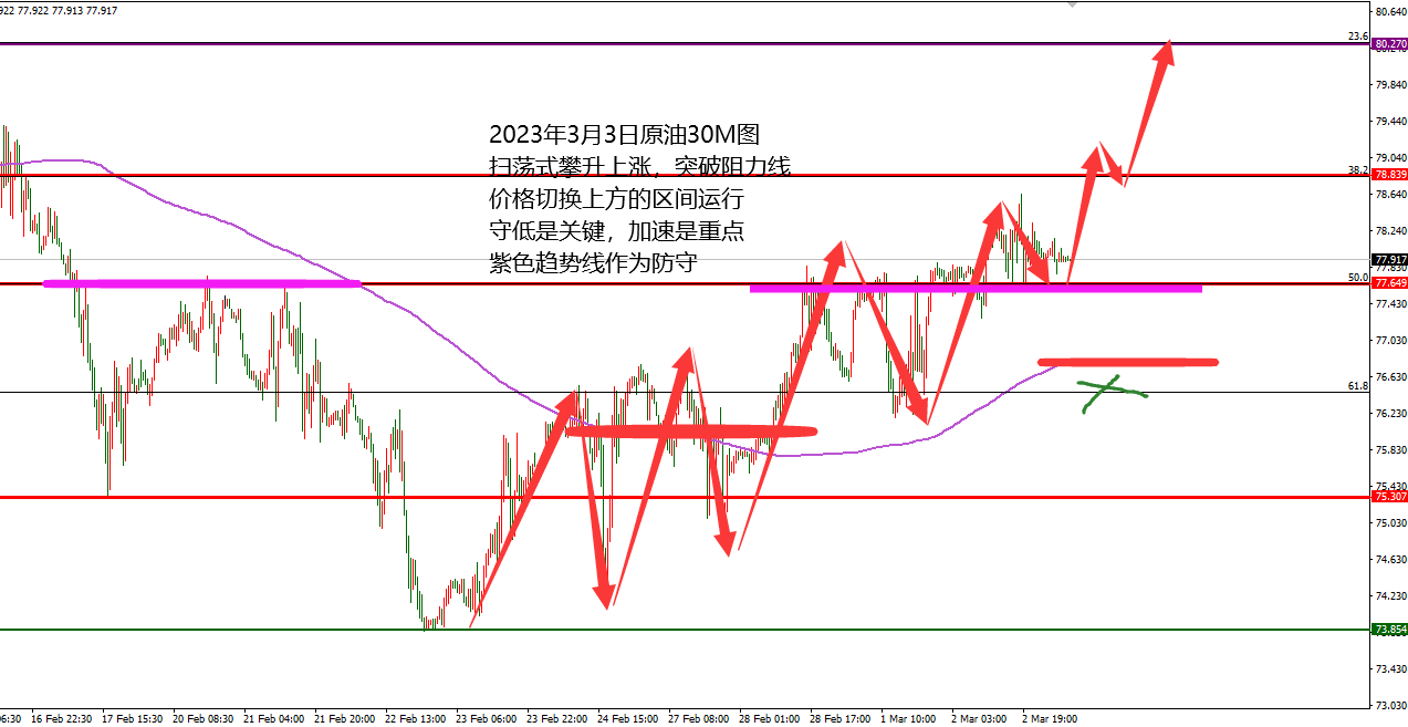 何小冰:黄金扫荡依旧,原油守低看破高 03.01 黄金连续两个交易日跌破新低过后,尾盘探底回升攀升冲刺,日线收取连阳K线,今日白盘价格进一步突破多空分水岭位置1832-1834 是新的反转开始?还是空头的空间修正? 1、持续的低点抬升高点上移,向上切换区间,则是新的反转开始,守低破高看加速 2、冲高又回落,下探又拉升,还是空头的空间修正,前面三周的周初均是如此的空间修正。 所以,从时间上看,本周的节奏将决定是反转,还是空头的空间修正,后半周的涨跌尤为重要。 现在只是开始,所以不用着急去定义反转,走一步看一步确定即可。 空间点上,现在价格突破了多空分水岭位置1832-1834,而且处于此处的徘