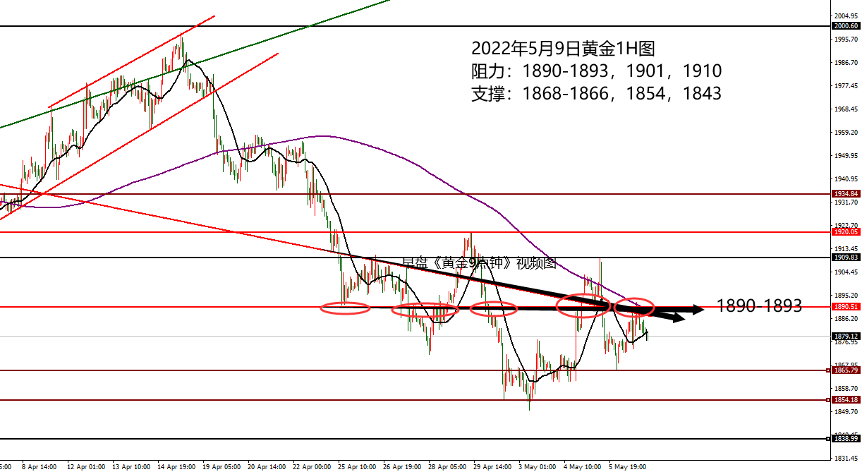何小冰:黄金1890-1860调整蓄势,今晚还有非农 05.06 黄金本周扫荡到极致,启动时延续加速,修正时反转变向, 周初跌多少,又重新涨回多少,昨日周四涨多少,又重新跌回多少, 将扫荡表现得淋漓尽致。 扫荡过程中,以利润区间等距离化进行空间切换17美元范围,当然最新的区间会突破三五美元,将空间进行扩大,然后又重新回到空间内。 以1890作为分界 , 周一 跌破后接连放量2个17美元的区间,从1890到1873,再1873到1856,然后开始空间略微扩大三五美元; 周二 承压加速下探至1850后,价格开始探底回升反弹走高; 周三 依托1860关口走高加速攀升至1890关口; 周四 早盘突破
