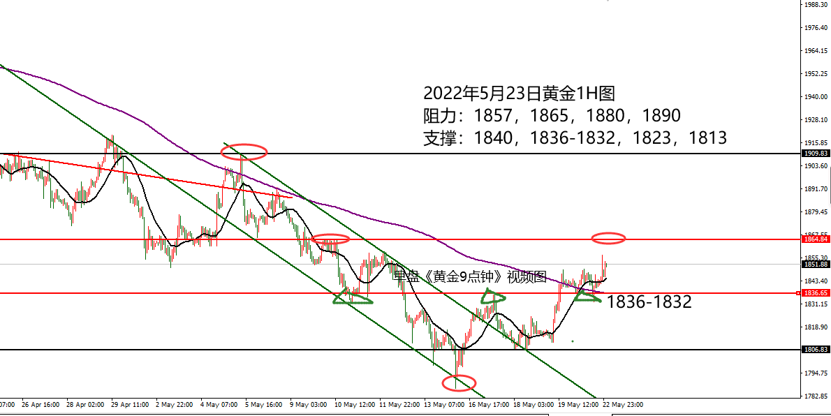 何小冰:黄金探底回升后,生命线和低点分界定涨跌05.17 连续四周的周一都是大行情,前面三周的周一单边直跌,不给任何思考的机会,直接放量下跌,所以昨日周一出现放量破低的时候,往往把人带进去要大暴跌了, 结果黄金V形反转,一口气直接拉升冲刺,跌多少,涨回多少,又回到上周五的高点1828-1830区域。 今日白盘回踩1822-1821位置向上攀升来到1830关口,然后欧盘再度回踩只给到1823上方,又是震荡走高。 看的是黄金欧盘探底回升的反弹 ,所以参考给出支撑1815-1812区域的多单,但价格小幅回踩后再度攀升,以依托低点破高对待,延续性的行情不破低走延续,所 以参考1826直接做多,防守止