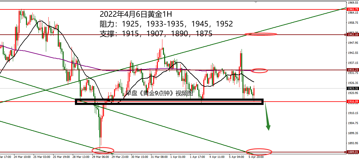 何小冰:久攻不破终须回落,破1915放量下跌 04.07 摸爬滚打的黄金,就像一个在玩具店门口撒泼打滚的小孩。 下方1915区域的支撑已经测试多次 ,形成支撑过后,黄金多头也没有借力直接冲刺,那这样子下去,1915早应该要跌破了, 黄金却偏不就不 ,每一次跌下去都感觉要大暴跌,突然拉升十几美元,看着要大涨上涨了, 黄金偏不 ,又跌回来十几美元。 不按套路出牌的黄金,按它现在的节奏, 即使最后真的要大涨大跌,也会把所有人都折腾到疲倦了才是真正的开始。 现在就是多空博弈的最后阶段,说什么都有依据和理由, 已经不再是技术主导的时候,反而是 心理战 ,看谁坚持到最后,也看谁能成为最后的赢家。 多空方