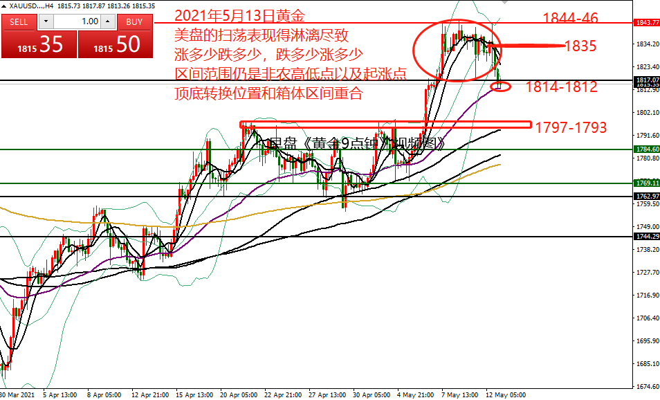 何小冰:黄金探底回升,守低破高看加速 05.14 黄金本周在美盘时段上演扫荡行情,涨多少跌回多少,跌多少涨回多少,来回扫荡。 周一 美盘冲高回落,涨多少跌回多少, 周二 美盘先是冲高回落,然后变成探底回升,同样是涨跌多少都收复, 周三 就比较波折了,三次来回跑,先是冲高回落,然后探底回升,再冲高回落,这个过程中均是涨跌多少都收复。 昨日周四 仅仅在美盘前下探破低后重新震荡反弹走高,美盘时段延续震荡反弹,尾盘高位横盘修正,没有太大的波折。 今日周五早盘黄金承压1828区域进行承压回踩1820下方,午间探底回升反弹 ,破高点向上寻找周三尾盘的起跌点位置1835-36,整体形态向上倾斜,美元指数的