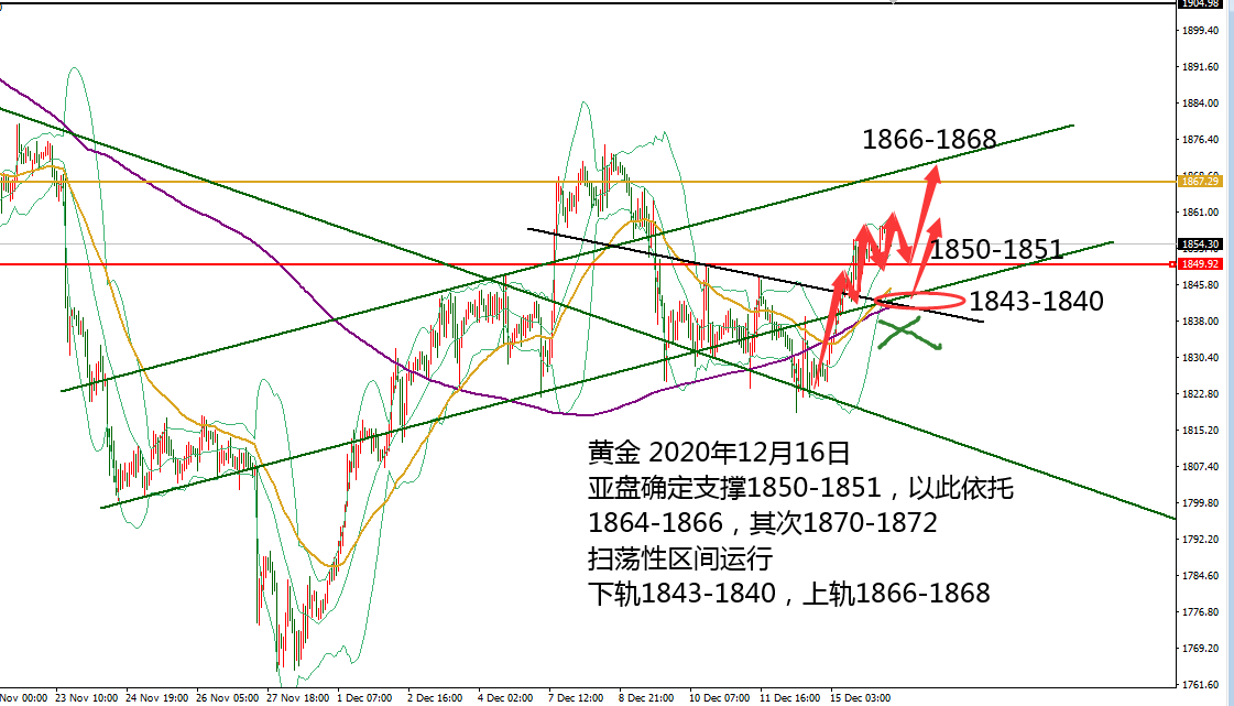 何小冰:黄金1850之上续涨,1840之上通道扫荡 12.16 周四凌晨3点美联储将公布12月利率决议和政策声明,随后鲍威尔召开新闻发布会 。此次会议上市场普遍预计将在资产购买计划上有所调整。作为今年美联储最后一次利率决议,回顾过往,前瞻2021,重点仍在于未来的规划和安排。 而在昨日,美国参众两党就9080亿美元的财政救助方案作了“妥协” :第一部分是7480亿美元 包括每周额外失业救济金以及薪酬保护计划下的贷款开支; 第二部分是两党争议最大的1600亿美元 ,主要针对州和地方政府的财政援助。 受此消息影响,黄金重回1850关口上方,接下来关注是否延续利好攀升。 今日晚间美国公布11月零售
