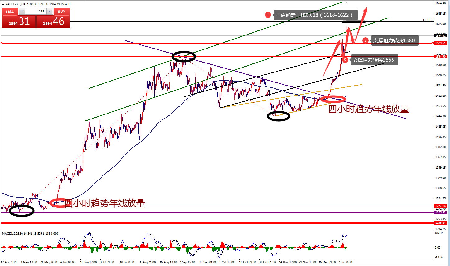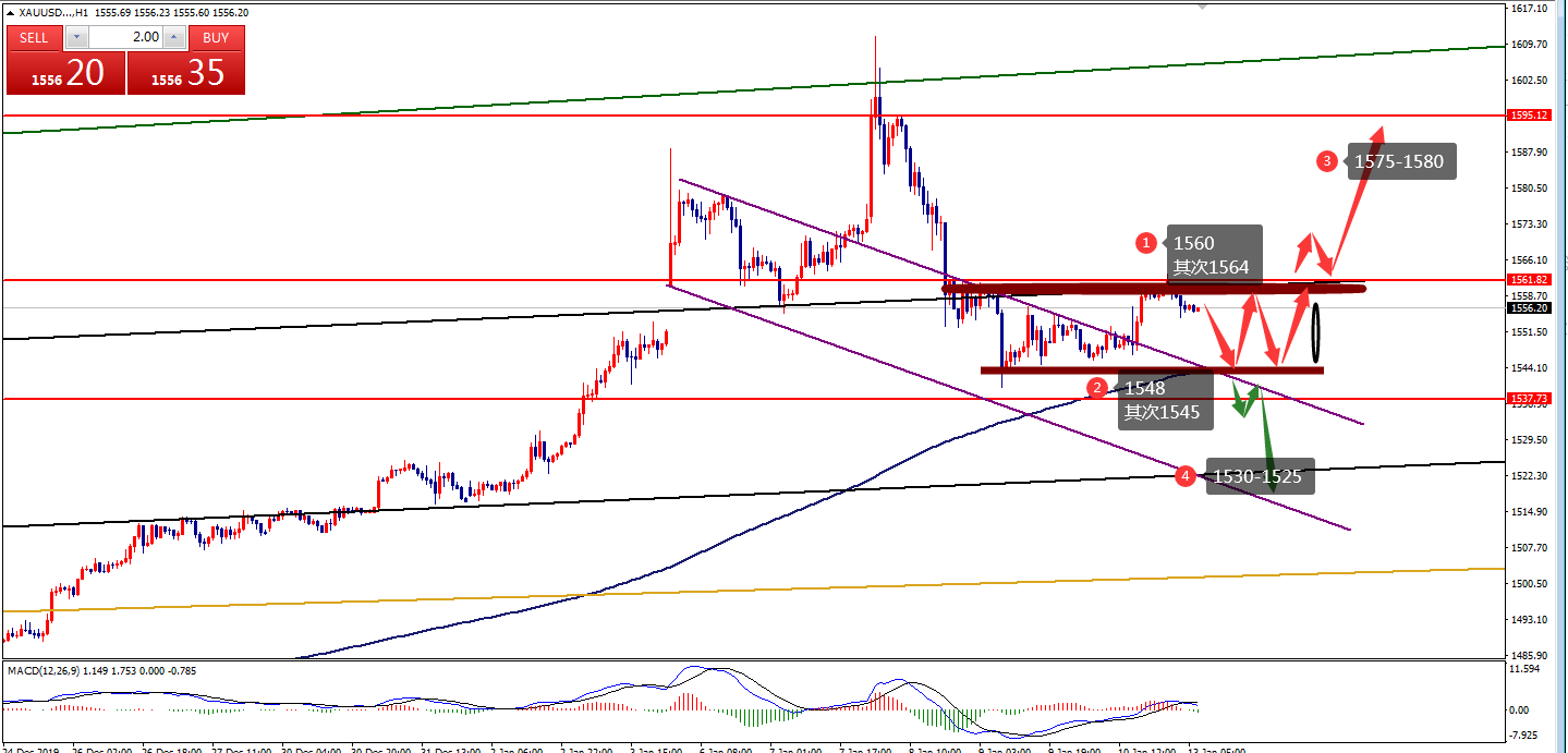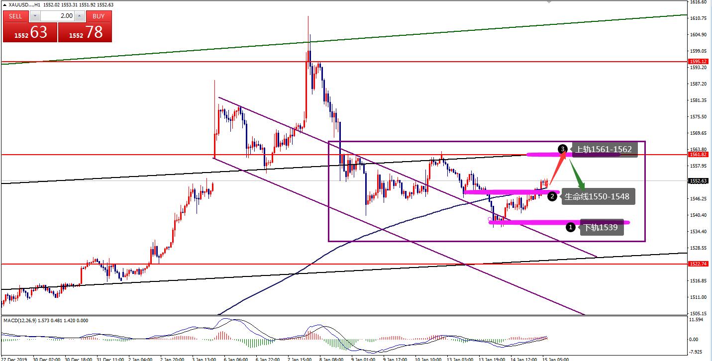 何小冰:非农黄金综合实战梳理,区间修正1540-1562低多为主 又是一周的星期五,用了十天的时间还是习惯把2020年打成2019年,反复手误提醒着自己2019年已经过去了,新的一年正式开始。就说时间,一年365年打了365个2019年,换了新年,刚开始各种别扭手误,这不跟我们刚开始做风险控制一样嘛,刚开始怎么带止损都觉得别扭,带着带着就觉得很自然的一件事情,再到后来就习以为常。 30天养成一个习惯,300天形成一个态度,时间能够在无形中改变着一切。 前面两周更新了两个心态感悟,属于主观性的个人看法,若是觉得对应自己的投资有所帮助,可以保留下来,投资存在着很多人性,一百个读者就会有一百个哈姆
