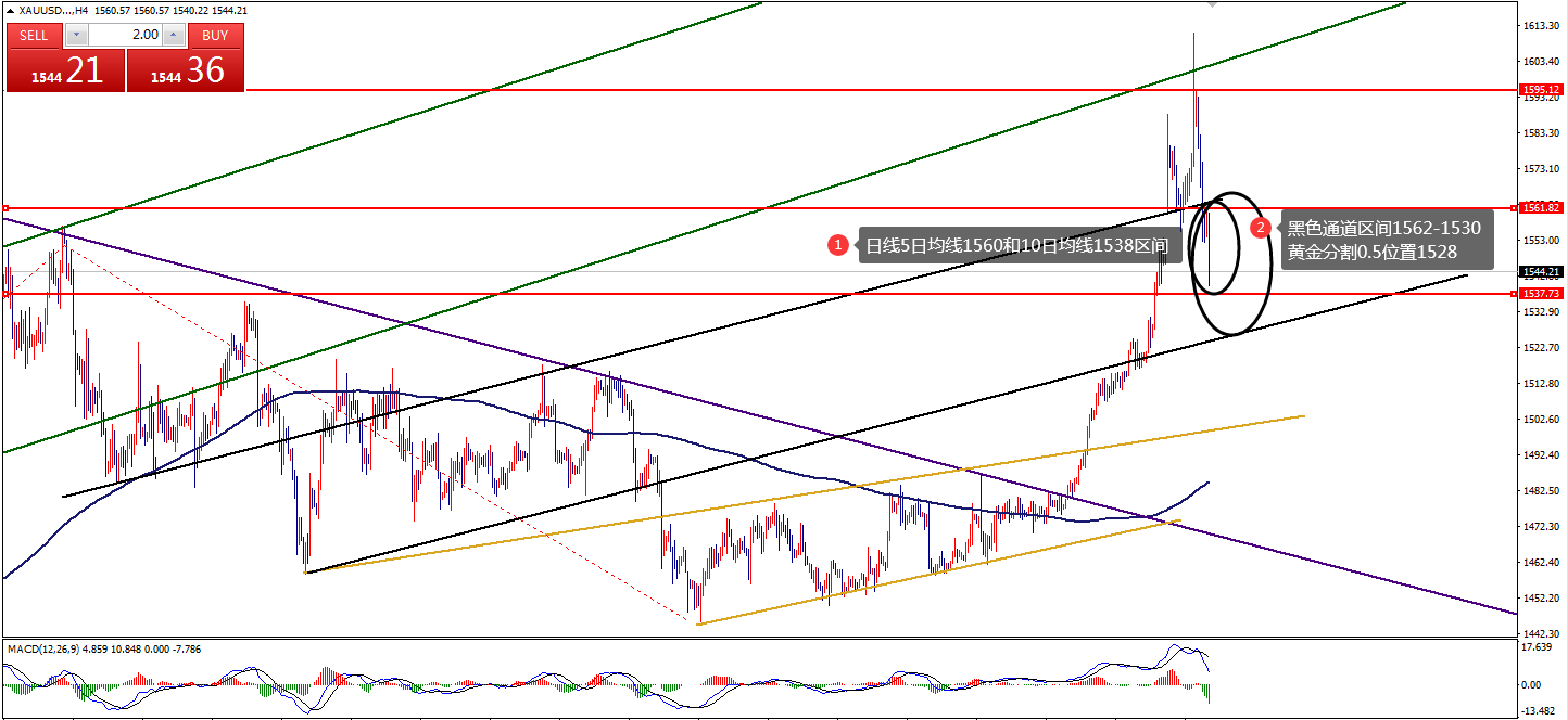 何小冰:黄金大阴回撤修正,1560-1538高空低多 01.09 行情回顾: 黄金周一亚盘跳空高开高走,欧盘横盘震荡,美盘承压走低收复涨幅。 周二亚盘急跌下探,欧盘探底回升,美盘延续多头走势。 周三早盘直接拉升走高,支撑1573上探至1611,随后承压回落至1583,反复测试1595的压力未果,午后开始继续承压走低,接连破低下探,直至美盘时段借助小非农ADP数据利空破开盘起涨点1573加速下探至1568,短线拉升10美元至1578,随后陷入震荡,凌晨受到消息影响,再次承压1575下破低点加速下探至1552,反弹确定阻力1563后低位横盘修正。 亚盘强势拉升走高,随后冲高回落,欧盘延续走低,美