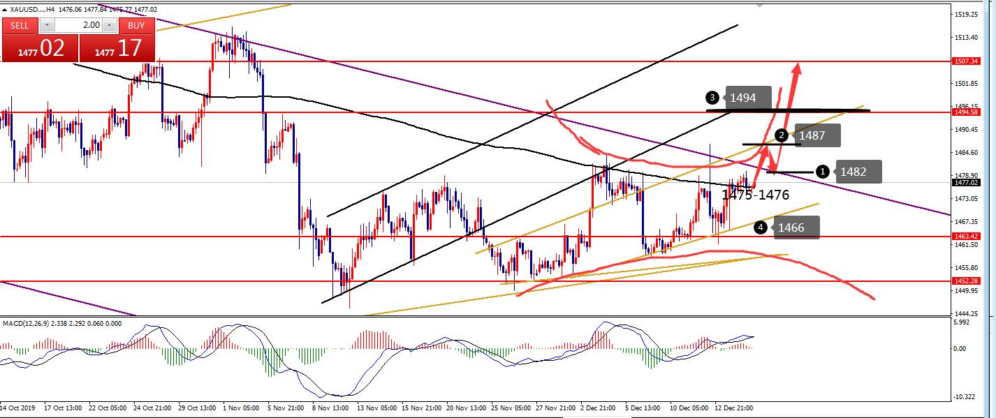 何小冰:黄金1476继续做多,破位时机在今日 12.18 行情回顾: 上周黄金走势: 黄金周一大阴过后,亚盘低位修正,欧盘反弹,美盘延续反弹后确定更高压力,承压回落不破低; 周二亚盘低位横盘,欧盘反弹,美盘延续反弹后确定更高压力,承压回落不破低; 周三亚盘低位横盘,欧盘反弹,美盘延续反弹后确定更高压力,高位横盘; 周四亚盘高位横盘,欧盘反弹走强,美盘延续反弹确定新高后,承压回落不破低; 周五早盘破低后快速探底回升走高,欧盘延续反弹,美盘震荡反弹,高位横盘。 综合来看:亚盘修正,欧盘反弹,美盘冲高回踩不破低,周五亚盘破低后较大幅度的拉升,低点区域支撑作用强烈明显。 本周目前黄金走势: 周一亚盘