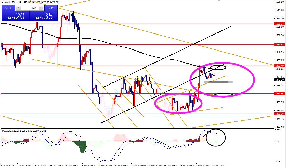 何小冰:黄金盈亏9比1的中线机会,短线逢低做多 12.09 行情回顾: 黄金上周一开盘承压回落,欧盘短线下挫至1454附近,随后探底回升走高上探,美盘二次回踩支撑上探重回1460关口上方,周二开盘支撑1460走强攀升,欧盘延续破高,美盘两度拉升刷新1481.8的高点,周三支撑走高破位1484,随后转为回落向下,周四横盘修正,周五再次确定阻力1480后放量下挫跌回1560下方位置。 周初支撑反弹,周中冲高回落,周尾延续回落。 技术分析: 黄金 在此前通过今年的整体行情分析,周线的修正与2月份的上涨后修正的形态和时间周期相似,连续四周的横盘走平区间1480-1450作为启动支撑的区间,能够守住箱