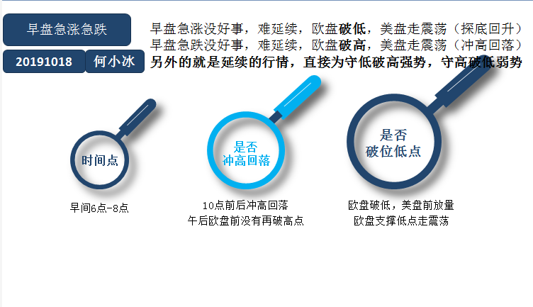 何小冰:知识关键词-早盘急涨急跌(16) 大家好,我是何小冰,这一周的知识点关键词《早盘急涨急跌没好事,难延续》。现在是一周的知识点关键词,一周的综合实战梳理,叫做梳理这个词更合适,毕竟运用是每个交易日都在做的事情,梳理才是周五在做的事情,这样子下来一个月更新两个知识点,两个综合实战梳理,看起来好像不是很多,当我重新翻看6月份的记录的时候,已经发现是两位数开头, 我并不想那么急着去更新太多的新的知识点,反而是能够在每周的行情中遇到什么新的知识点就讲什么知识点,看听结合,又是新鲜感触到的信息,反而能够帮助更多的人去快速熟悉理解知识点的使用。 历史不会重复,却总是惊人的相似,不能说所有的知识点在