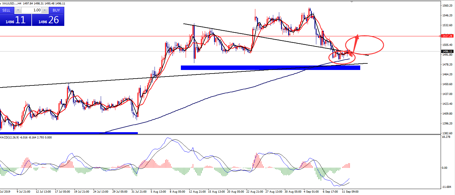 何小冰:黄金1493压制看新低,原油十字星定区间 0911 行情回顾: 黄金周一亚盘支撑反弹确定阻力,欧盘支撑反弹确定阻力,美盘确定阻力后加速下探破低。 周二开盘承压1500关口下方,起跌点1497开启早盘急跌下探,大幅回落下探至1486.5,午后开始震荡反弹,欧盘反复测试1497的压制承压回落,美盘回踩1488后再次拉升至1500关口,在23点前后确定阻力1500承压回落刷新新低1484,徘徊1490下方结束当天的行情。 早盘急跌,欧盘反弹,美盘前反弹确定阻力,冲高回落下探破新低。 技术分析: 黄金周线 失守5月份以来的5日均线支撑转为压力1516,下方支撑1475确定区间范围1475-1
