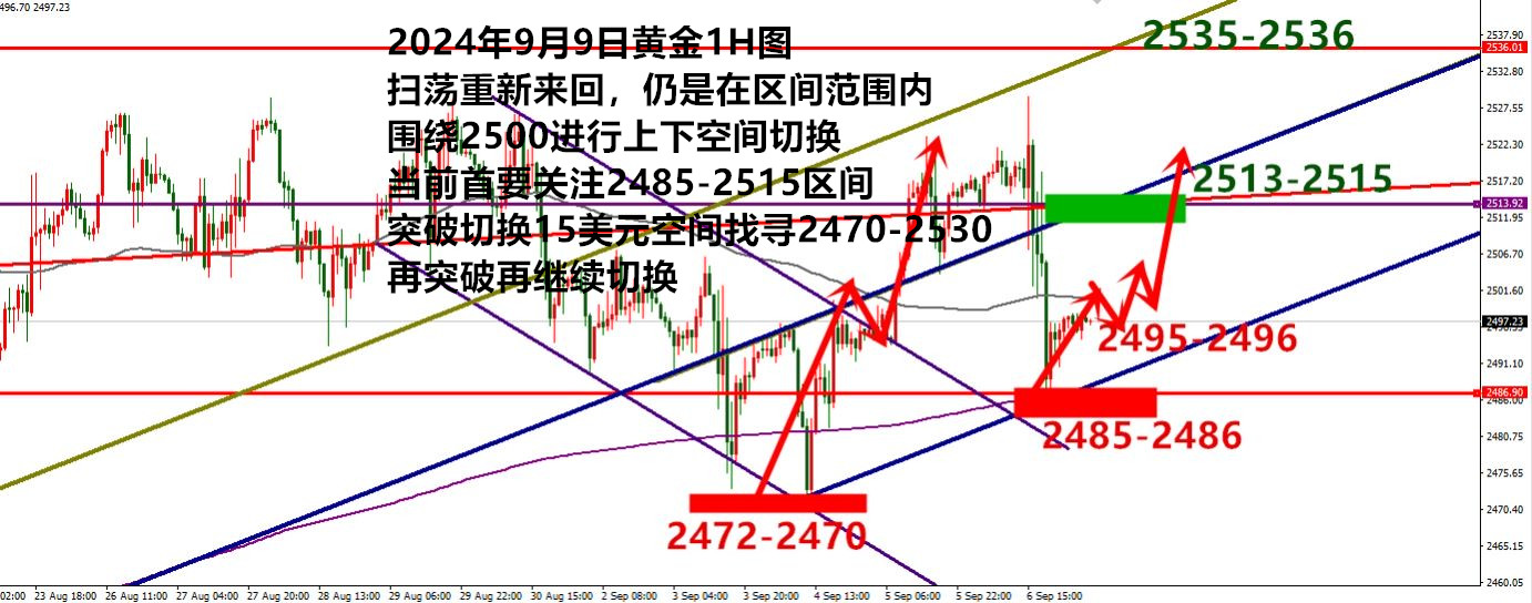 何小冰:守住2485先多看涨,欧盘涨跌是关键 上周五非农数据公布后,再度冲高2529,但是没有能直接突破2530关口,连续三周冲刺此处无法突破,周线收取三个高位调整十字星 继续围绕2500作为分界上下切换区间,进入第四周的区间扫荡 新的一口开始,首先一点,进行整体行情的梳理和总结: 1、周线高位三个十字星,区间范围2530-2470的区间 ,连续三周冲高2529-2530区域承压回落,又下探触及2472-2471的支撑形成反弹收复失地,持续高位的横盘扫荡,也是蓄势的一种方式 空间幅度60美元, 注意十字星的特色,突破高低点后形成加速十字星 ,后续着重关注到底是实破(注意是实破)哪一边,突破后