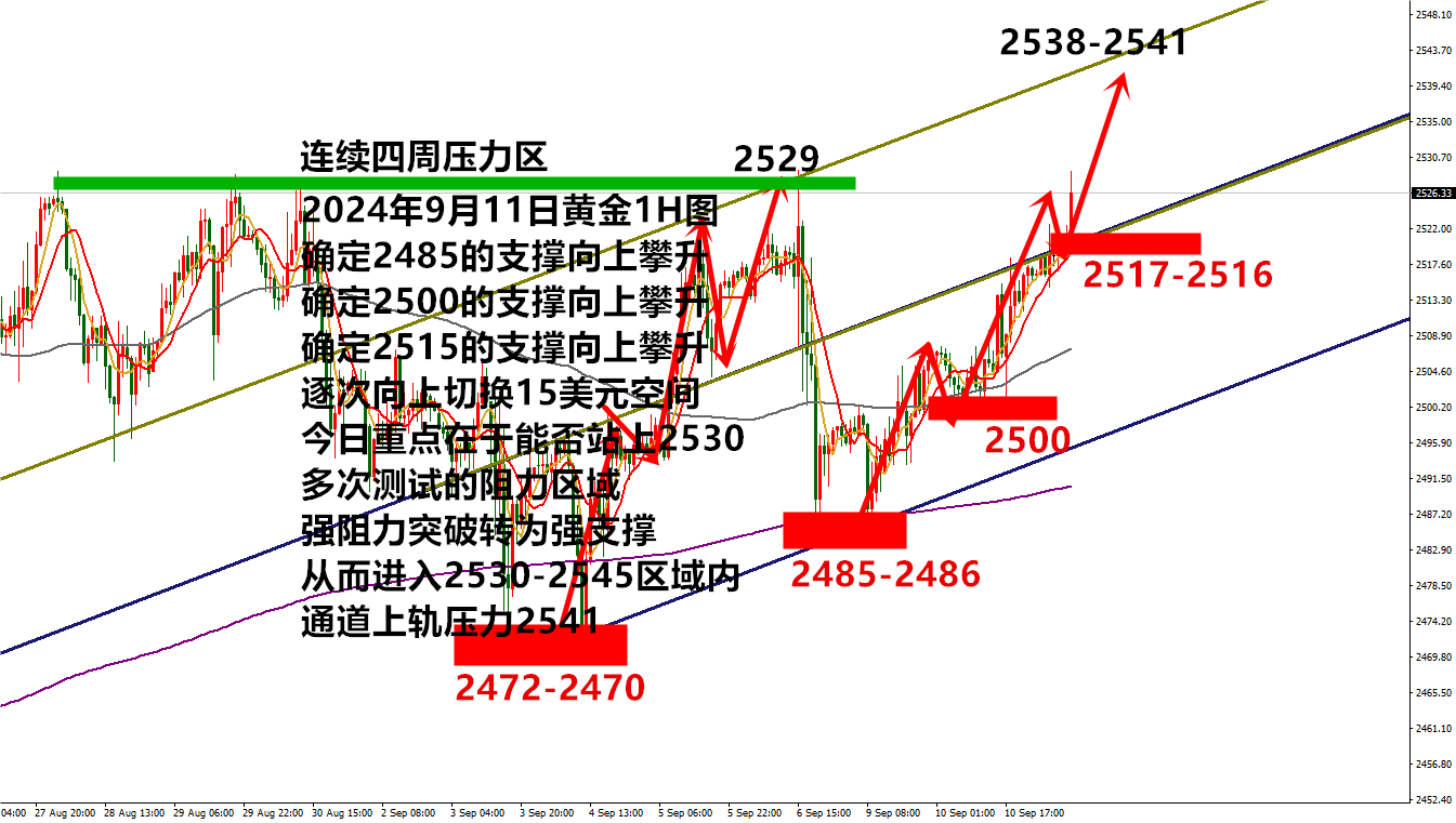 何小冰:选定多头,坚守持多,等待结果 慢涨急跌,低点逐次抬升,高点反复测试 第四个星期来到2530关口,昨日周三还是不能一举拿下,再走了一个深蹲确定2500关口区域的支撑 昨晚我们都提及,价格能够守住2500关口,深蹲作为借力,毕竟在2529下方持续徘徊了整一个下午的时间,始终无法突破,最后只能靠借力再向上来走突破 狼来了的故事讲了快四个星期,等真正狼来了的时候,早就不信有狼了 前面三个交易日都是相似的结果,不管怎么下探,最终都会探底回升反弹,意味着节奏点没有变,那么参与上便是保持节奏点继续看涨攀升 过程会伴随着深蹲呀,或者小幅回踩的动作,然后打多的损,这是扫荡中不可避免的,但不要轻易就改变
