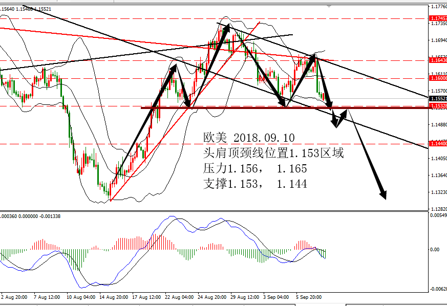 何小冰:小非农今晚登场,头肩顶or头肩底 09.06 今日周四,小非农和多项重磅经济数据登场,黄金靠近1200关口,叙利亚政局危机一触即发,多国混战局面恐一发不可收拾,是避险黄金?还是美元?需要留意动态更新。早间API数据不及预期,加速飓风影响降低,油价承压回落破低,晚间EIA登场,预计震荡回调为主。 技术分析: 美元指数 昨日依托95.2加速测试高点95.6,美盘过后受到美联储官员的鸽派信息的影响,打压回落跌破95.2后加速下探94.9区域。日线承压生命线回落,小时图布林带收口区间94.6-95.7,顶部小箱体整理后,重回趋势线上方位置,承压生命线回落形成颈线位置,支撑区域的防守,防守有效