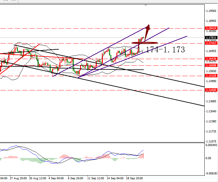 何小冰 黄金1198多,欧元1.174多看区震荡 09.25 本周市场焦点关注美联储9月利率决议,随后美联储主席鲍威尔召开新闻发布会,日本央行,英国央行和加拿大央行相继发表讲话,多事之周,横盘区间有望被打破。 技术分析: 黄金 从8月至今将近一个月的时间,围绕大区间1215-1188的27美元区间调整,其中以10美元作为分界点利润区间来回切换,不延续是震荡的最大特色。周一至周三震荡反弹,周四周五收复反弹失地。 黄金上周五尾盘承压1211,借助机构砸盘直接下探1192附近,周一并未延续破位新低,反弹是震荡走高再次测试1204附近,与上周一行情如出一撤。区间尚未打开,仍是震荡对待。 黄金周线均线