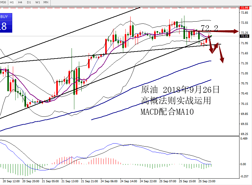 何小冰 原油72.2空,英镑1.318防守空 09.26 市场翘首以盼的美联储利率决议即将公布,虽然9月加息已有被充分消化的可能,但决议中关注政策声明和未来加息规划仍需重点关注!API数据意外录得增加后,油市看涨情绪能否撑过EIA库存?德拉基及多个欧洲官员发表讲话,若维持鹰派言辞,将利好欧元向上测试。 技术分析: 黄金 从8月至今将近一个月的时间,围绕大区间1215-1188的27美元区间调整,其中以10美元作为分界点利润区间来回切换,不延续是震荡的最大特色。周一至周三震荡反弹,周四周五收复反弹失地。 黄金周线均线压力1203,年线压力1224,支撑分界点1191。日线布林带收口区间1191
