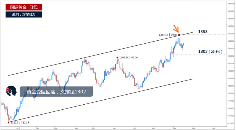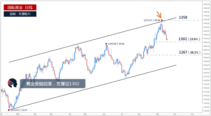 欢迎各位投资者关注笔者早评,午评,晚评,午夜金评;笔者每天都会固定时间与大家分享关于黄金原油白银走势的个人见解及操作建议。 消息面解析: 备受市场关注的美联储利率决议公布,维持利率不变,10月份正式开启缩表,暗示年内仍然会加息一次,一系列的消息刺激下,黄金大幅下跌一度跌穿交易员认为是心理支撑位的1300美元