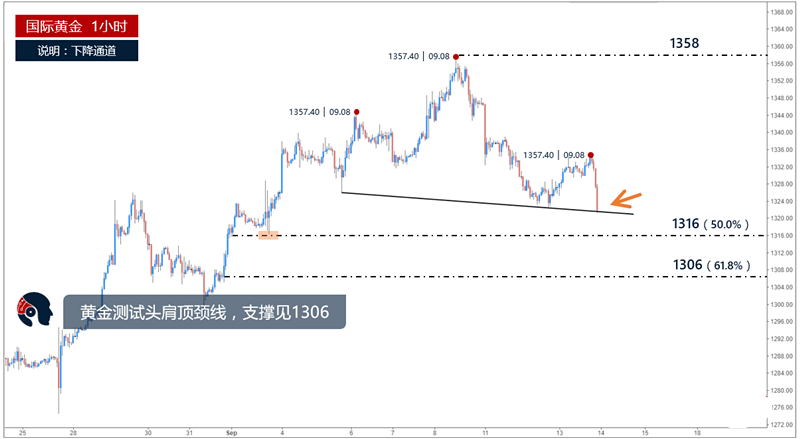 早上好!本周黄金低开10美金然后震荡下行,给黄金多头投资者泼了一盆凉水,你的多单还继续在持有吗?这两日你是否一直在等着黄金反弹回补缺口呢?你的多单套到现在损失了多少利润呢?现在宇梵来跟你讲讲:周一低开后开始低走,冲高1338空单进场,跌倒1328离场,这是10美金利润吧;期间震荡1331~1326这是5美金利润吧;周二13