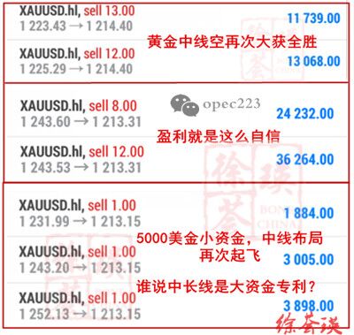 徐荟瑛:7.19黄金空头盛宴你分几杯羹?五千美金照样玩转中长线 市场上从来都不缺赚钱的人,但是肯定没有你。市场上从来都不缺解套的人,但是肯定会有你。许多人明明看着一直在跌,就是不愿意去承认是空头,一有反弹就认为是反转迹象,不为什么?因为他们要么有多单,要么是打算“抄底”的,所以更喜欢听到跟他们相同的观点,黄金要大涨,暴涨,涨到1400,那样的观点。所以对于看空观点很多人是很排斥的,因为他们更愿意在网上找看多的文章,符合他们“预期”,然后自我安慰多单是可以回本甚至是赚钱的,但是徐荟瑛想要提醒我们操作是要根据行情顺势而为。 温故而知新,顺势空单盈利1.5万美金 行情跌跌不休,再次出新低1211,