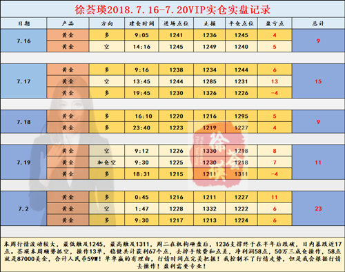 徐荟瑛:7.26月线收官在即,黄金多头能否破釜沉舟?1236恐难挡 每一次成功的交易都离不开坚决的信心和敏锐的嗅觉,一次抓住机会是偶然,但多次把握机会就是对市场的了解及运筹帷幄产生的结果。自信与骄傲不同,自信者常沉着,而骄傲着常轻浮。凡是能稳定盈利的投资者,大多是能平静的对待交易中的成功与失败,盈利不骄傲自满,亏损不丧失信心!这样方能在黄金市场中得心应手,顺风顺水。下面来看下昨日的操作回顾和本周的行情走势。 ====温故而知新,稳健是我的座右铭,昨日再入10点 荟瑛周三操作回顾,区间洗盘利润步步收割:早间策略清晰给出,目前行情短线1233-1235下都保持低位反复洗盘整理思路,关注上方123