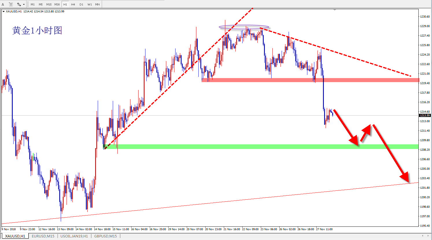 今天早盘在文章中告诉大家1231位置站稳后可以先多,但是很遗憾的是,黄金只是冲击了一下1231位置后就继续下探1223位置了,并且王杨直接给出了1227的现价空单,再次证明了我们临盘决断的正确,你如果被今天的行情给打的晕头转脑的,那就直接联系王杨,一顿饭的钱就可以为你的交易保驾护航!点击这里,王杨之师期待你的加入! 黄金今日受中期选举的影响,行情上窜下跳,但是最终还是在区间之内震荡;最终川普输掉了众议院,赢得了参议院!从结果上来看是偏利好黄金的!不管结果如何,最终还是要落实到实际走势上来,当前依然重点关注早盘提到的1231位置的得失,1231下继续空!1231上反手做多! 交易就是这