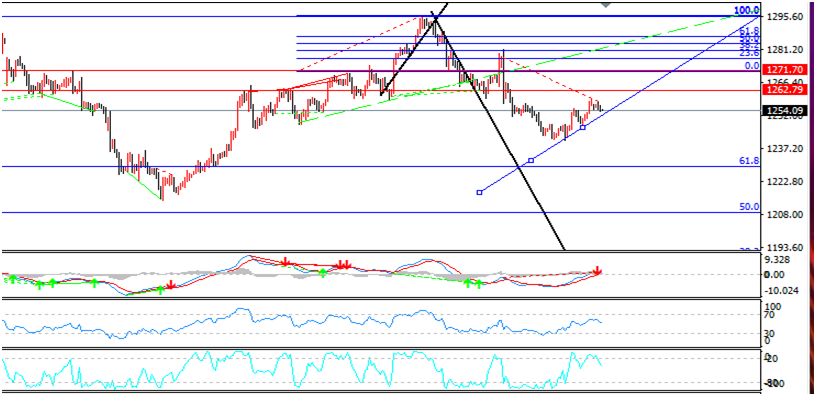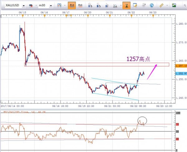 行情回顾 经历一周的行情,黄金基本维持宽幅震荡走势,周初黄金自1260下方回调以来,上半周基本维持震荡回调走势,周三黄金开始启动多头行情,1240附近支撑强劲。底部震荡时间较长,再一次印证了黄金连续性的多头行情。后市加速向上至1260一线,多头展开反攻。后市仍有机会延续多头行情多单1260上方须适当性保持谨慎。周一