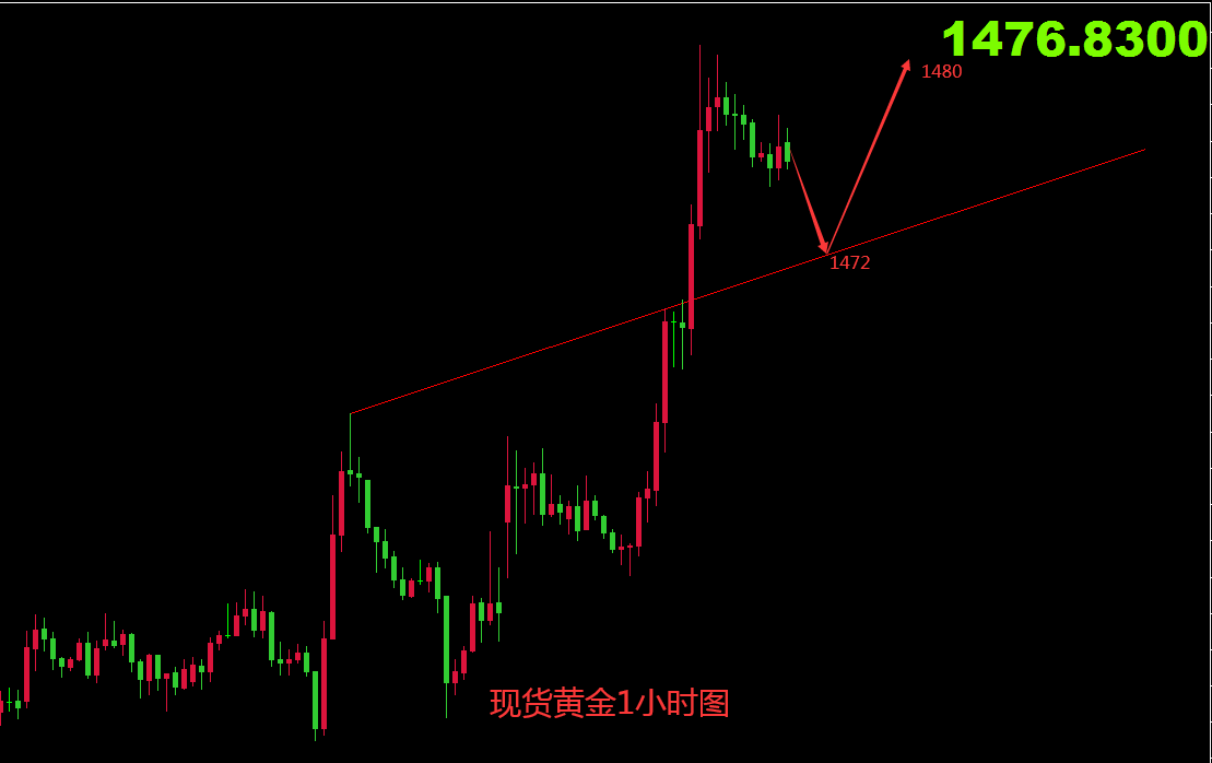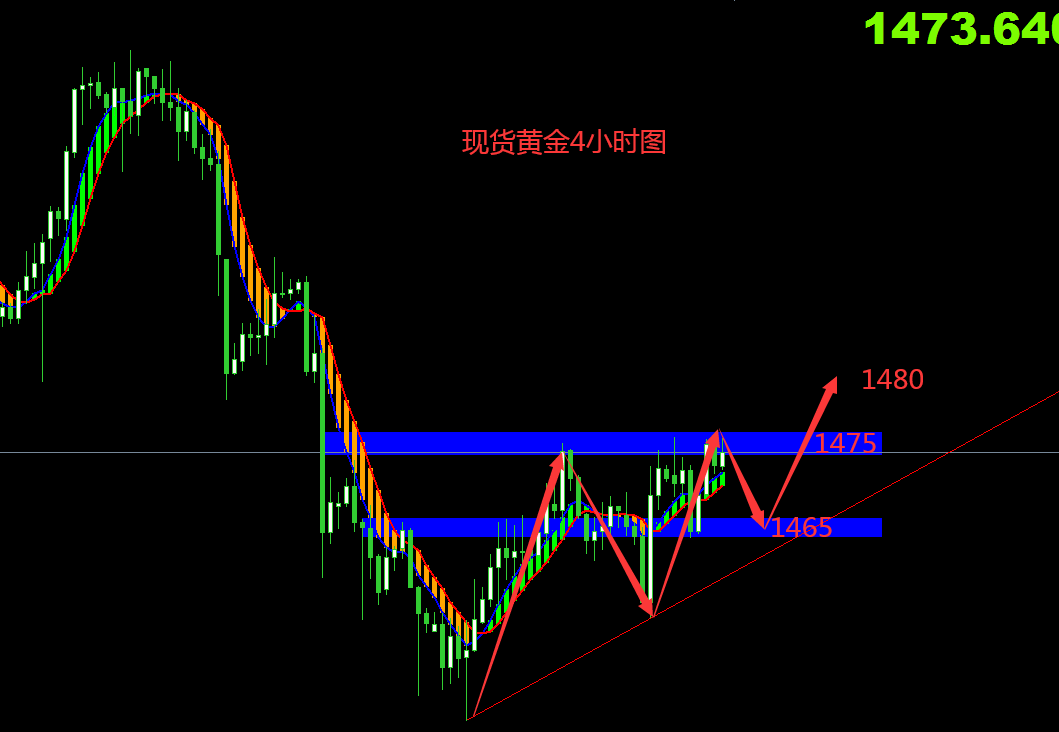 现货黄金高阶知识:等待是指等待支撑、等待大阴大阳、等待拐点,等待支撑是左侧交易,等待大阴大阳是右侧交易,等待拐点是右左侧交易,既右又左,既左又右。只会等待大阴大阳会死于趋势发动前的洗盘,且丧失振荡利润,只会等待支撑会丧失趋势机会,只会等待拐点入场机会就太少了。支撑到了你要入场,趋势启动了你要追单,不会等待拐点你就丧失了最佳盈亏比入场点。三种交易方式缺一不可,只会一种不行。 昨日行情回顾:在周二大阳拉升之后,周三周四金价再次陷入窄幅震荡行情当中,昨日金价白盘时段行情波动幅度一度在5美金左右,即使凌晨上冲一次1480幅度也不到8美金,整体走势不延续,1小时级别布林带收口之后走平,市场仍然在等待今