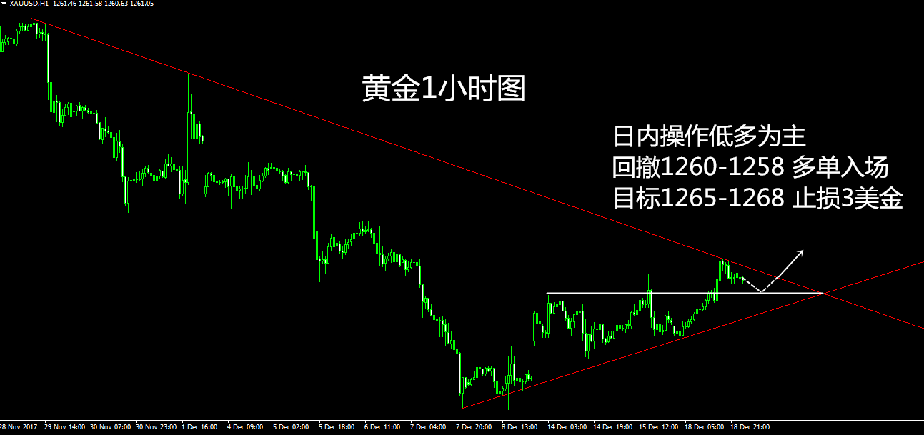 摘要:日内操作低多为主,回撤1260-1258多单入场,止损3美金,目标1265-1268 朋友们早上好,逼近年尾天气日渐寒冷,成都天气逼近0度,请各位投资者朋友记得添衣,李贵昨天文中重点阐述1260这个关键位置的作用,前期自1357一线下跌以来一度在该位置附近受支撑反弹逼近1300,虽然最终受美联储加息卖消息影响一路下跌当一切尘埃