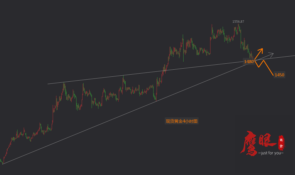 各位投资者朋友大家上午好,最近的行情你说他好操作,他也不好操作,你说不好操作,但是赚钱的人也不少,其实关键在于对行情的预判,到底是趋势行情,还是震荡行情,判断准了剩下的就是找点位进场了,但是如果没判断正确,就会左右开弓啪啪打脸,从上周三开始整体行情就没有之前的行情走的干净利落,连续四天来都是上下试探震荡,你说追吧,不敢,你说低位做多吧,怕单边,结果就是看来看去好几天可能都没下手了。 昨日行情回顾:昨天的行情一度下跌后强势反弹,美盘更是快速拉升触及上方日线级别EMA20日均线之后迅速回落并一举突破日内震荡下边缘快速下行,今日早间更是急跌一波下探1480后小幅回升,目前在1483.5附近运行
